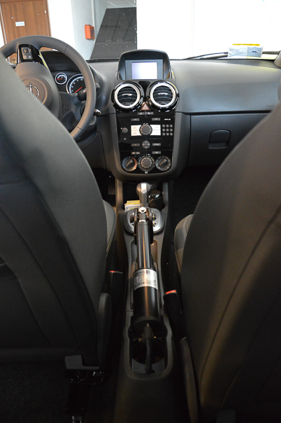Allestimenti: freno a mano elettrico e Clacson a pedale installati su Opel Corsa.